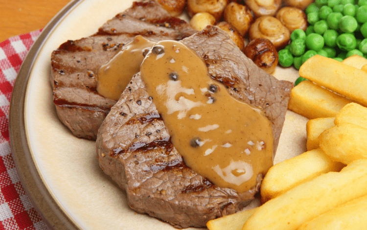 - ضعي الستيك في طبق التقديم وصبي الصوص فوقه وقدميه ساخناً إلى جانب البطاطس المهروسة والخضار السوتيه أو السلطة حسب الرغبة.